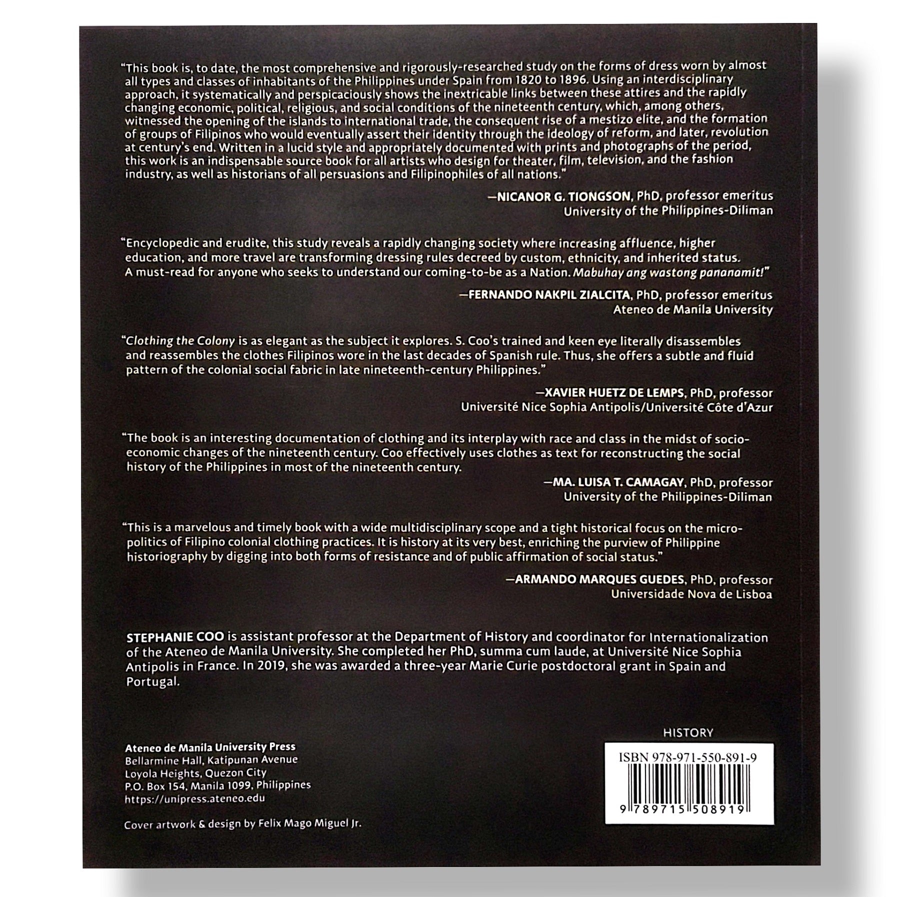 "This book is, to date, the most comprehensive and rigorously researched study on the forms of dress worn by almost all types and classes of inhabitants of the Philippines under Spain from 1820 to 1896. Using an interdisciplinary approach, it systematically and perspicaciously shows the inextricable links between these attires and the rapidly changing economic, political,, religious, and social conditions of the nineteenth century, which, among others, witnessed the opening of the islands to international trade, the consequent rise of a mestizo elite, and the formation of groups of Filipinos who would eventually assert their identity through the ideology of reform, and later, revolution at century's end. Written in lucid style and appropriately documented with prints and photographs of the period, this work is an indispensable source book for all artists who design for theater, film, television, and the fashion industry, as well as historians of all persuasions and Filipinophiles of all nations."